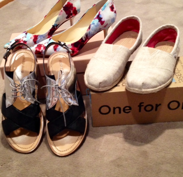 The shoes below are from my daughter’s closet. Her foot grew during pregnancy, and she can no longer wear these. They make a nice addition to my collection. Did you buy any shoes this summer?